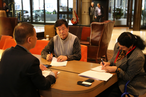 我公司董事長(zhǎng)于2015年11月12日在加拿大多倫多與美國(guó)銳拓技術(shù)工程有限公司總裁及執(zhí)行官M(fèi)ahin簽訂《合作協(xié)議》。