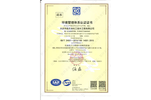 環(huán)境管理體系認證證書